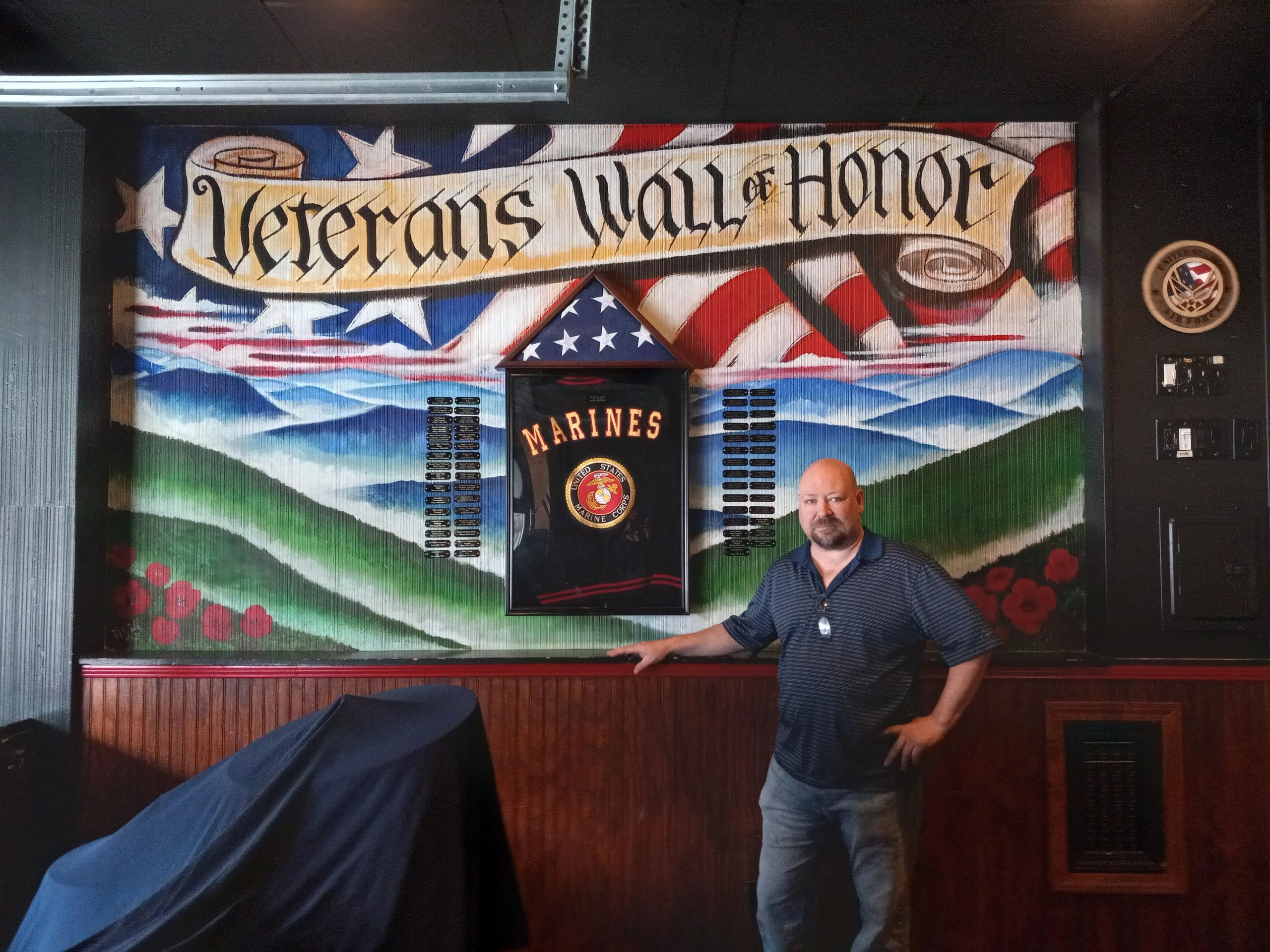 One of our newest supporters - Mike Griiffin, owner operator of The Dugout Sports Bar and Taphouse on North Main, Hendersonville. Mike is standing by his Veterans Wall of Honor centered by his father's jacket. We appreciate all our supporters. Their contributions will enable us to meet our goals and fund our mission.